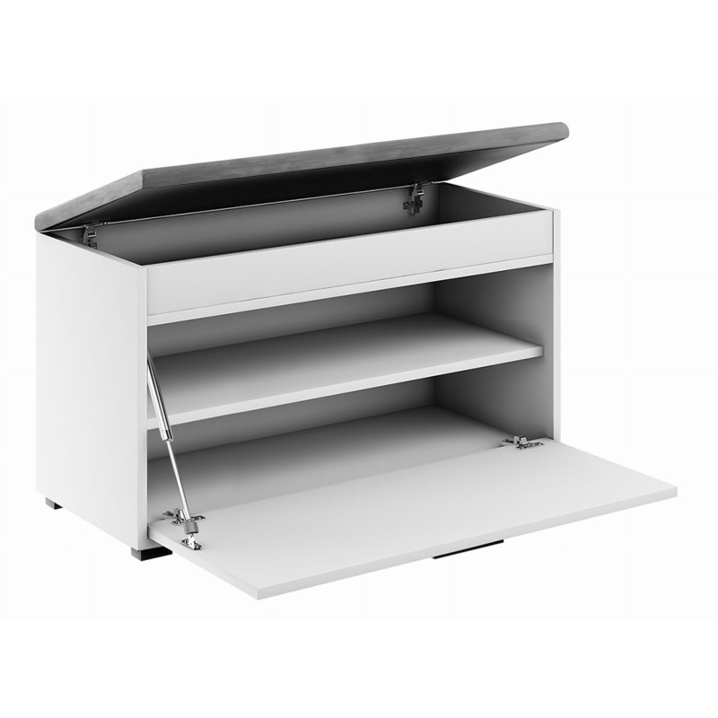 Szafka na buty z siedziskiem FALA 1W biała/czarne uchwyty czarne